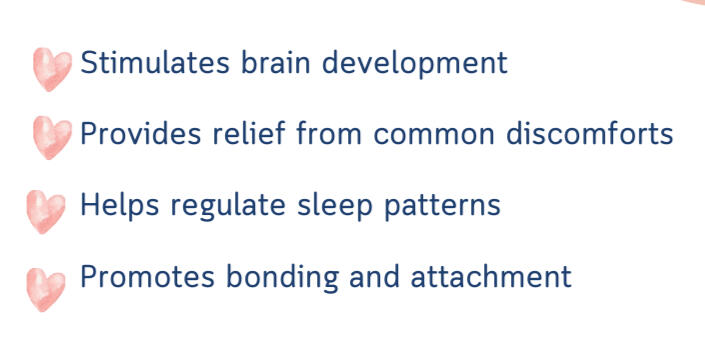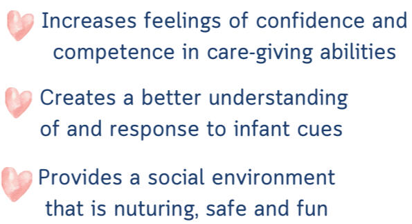 Teachings can be done either one-on-one in your home, virtually or in a classroom setting with other parents and babies.Each class is 60 min long and runs for 5 weeks, once/week. The course provides parents and babies the time necessary to learn strokes, use them at home and return each week to share experiences and ask questions. New topics are discussed each week.