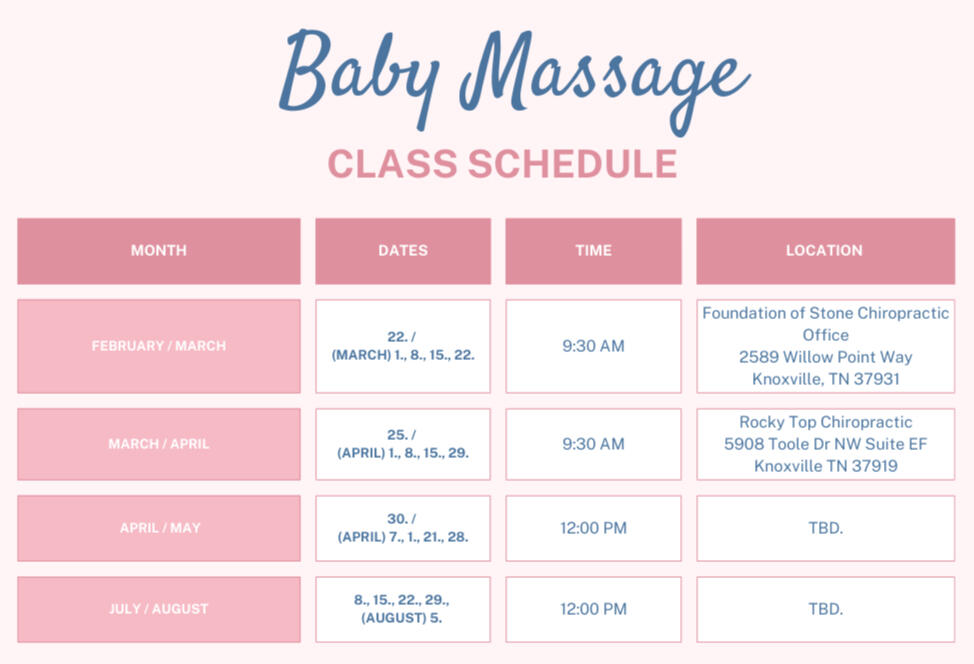 Baby massage in Germany is common practice when you have a newborn and I really enjoyed doing it with both of my girls. I was surprised when I found out that rarely people have heard about it here in the US.So I decided to become a licensed Infant Massage Educator and introduce to parents this wonderful way of connecting to their baby.My family and I now live in Knoxville, TN, where I offer in person classes for groups and one-on-on sessions. Virtual trainings are also available and can be a relaxing option from the comfort of your home.